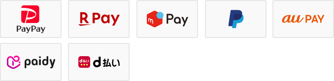 PayPay、楽天ペイ、メルペイ、PayPal、auPay、d払いがご利用いただけます。Paidyは、1ヶ月ご利用分を翌月にまとめてお支払いいただける決済サービスです。あと払い(ペイディ)についてはこちら